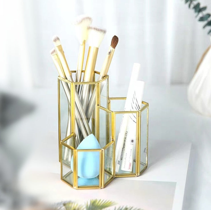 🌸Elevate your beauty routine with this chic Hexagonal Composite Makeup Brush Holder
